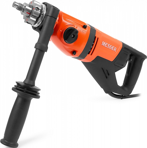 Дрель алмазного бурения с микроударом Messer DDM-150 (Мессер ДДМ-150) предназначена для сухого сверления отверстий Ø 30 – 150 мм с микроударом в твердых материалах, таких, как: железобетон, кирпич, камень; без подачи воды. Используется для общестроительных работ, отделки, электромонтажа, монтажа сантехники, вентиляции, сплит-систем и многого другого.