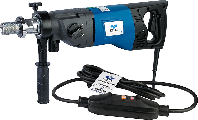 Дрель с микроударом для алмазного бурения Keos Pulsar KS-180 (Кеос Пульсар КС-180) – мотор с функцией микроудара для сухого алмазного сверления бетона, железобетона, кирпича, асфальта и других твердых материалов алмазными коронками Ø до 180 мм, может использоваться как в ручном режиме, так и с применением стойки (штатива).