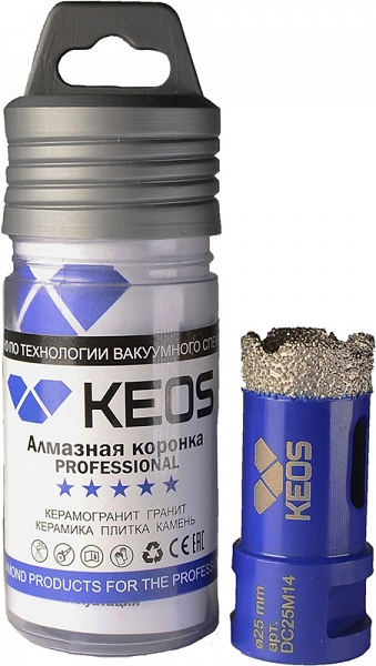 Цена и технические характеристики коронки алмазной по керамограниту Keos Professional Vacuum Brazed M14 25 мм: