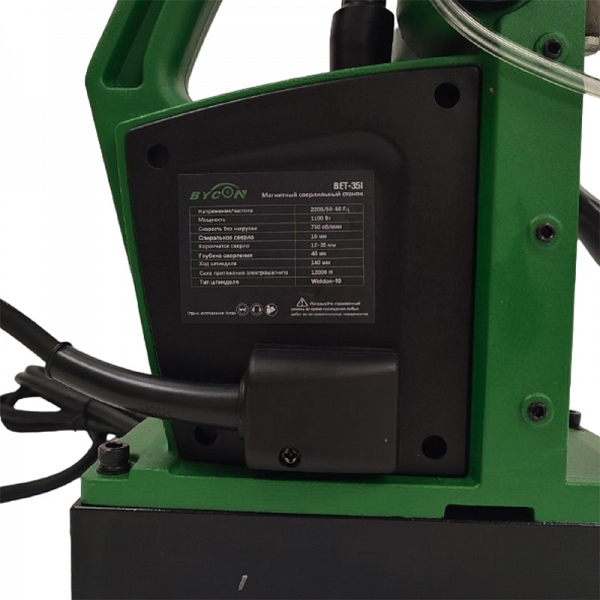 Магнитный сверлильный станок Bycon Bet-35I (Байкон Бет-35И) – переносной сверлильный станок на магнитном основании является оптимальным решением для сверления отверстий Ø 12 – 35 мм в металле корончатыми сверлами (кольцевыми фрезами) и Ø 6 – 16 мм в металле спиральными сверлами с к/х.