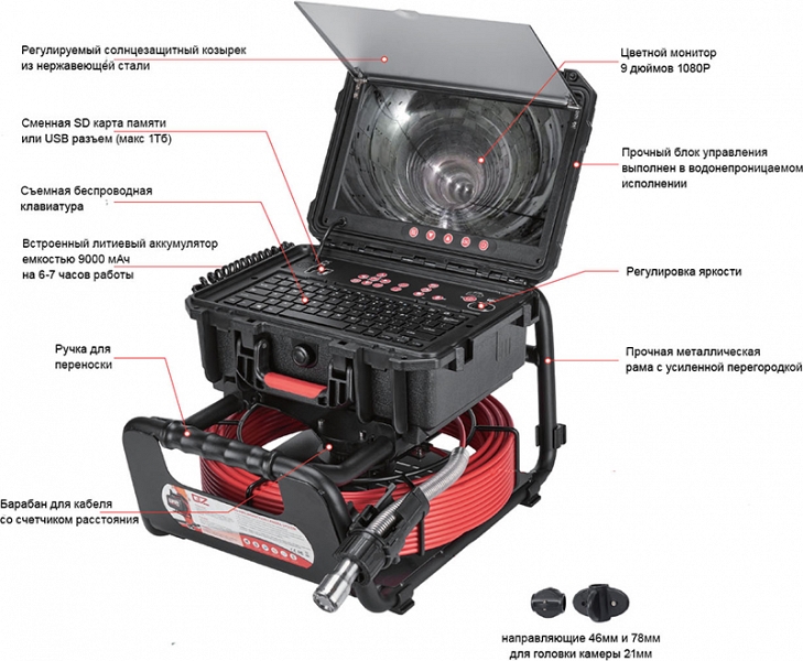 – Головка камеры Ø 21 × 45 мм, 1080Р (1920 × 1080), 12 × LED