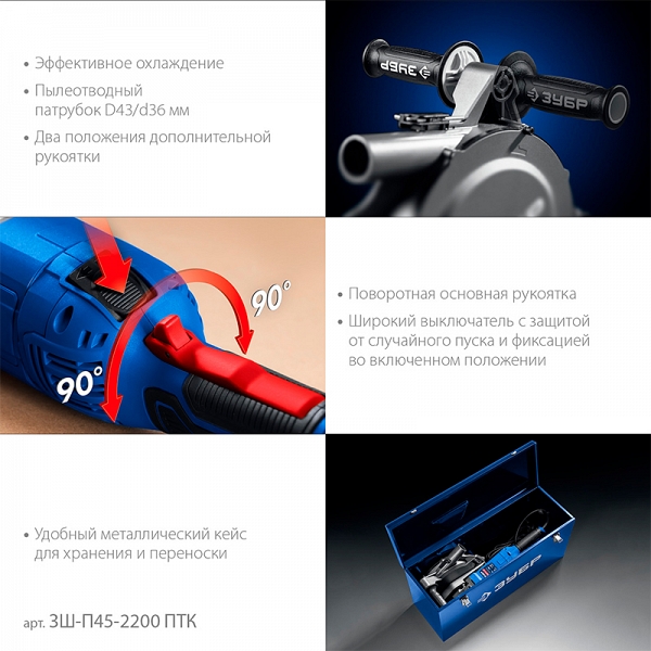Преимущества штробореза Зубр Профессионал ЗШ-П45-2200 ПТК: