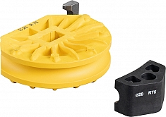 Для труб различной величины, из различных материалов и для различных радиусов гибки. Гибочные сегменты и упоры скольжения 180°, прочные и стойкие к деформации, из высокопрочного, усиленного стекловолокном полиамида или алюминия с высокими скользящими свойствами или гибочные сегменты 90° (D 21,3 R 103, D 26,9 R 102, D 33,7 R 100, D 35 R 100, D 42 R 140, D 42,4 R 140, D 50 R 135, D 1" R 100, D 1 1/4" R 140). Оптимальное согласование гибочного сегмента и упора обеспечивает скольжение в соответствии с материалом без образования гофры и заломов. Шкалы угла на каждом сегменте и маркировка на каждом упоре для более точного изгиба. Быстрая смена насадок. - Гибка по размеру:
