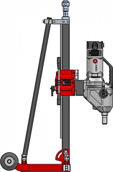 Установка алмазного бурения Cardi 500 (Карди 500) с неимеющем аналогов в мире сверлильным двигателем с 6-ти скоростным редуктором! Имеет широкий диапазон различных скоростей позволяет установить наилучшую скорость для алмазного сверления отверстий! Предназначена для алмазного бурения отверстий Ø 25 – 500 мм в бетоне, высокоармированном бетоне, а также Ø 25 – 600 мм в асфальте, кирпичной кладке под углом 0° – 75° с обязательной подачей воды.